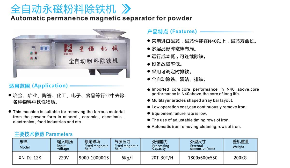 Automatic permanence magnetic separator for powder(xn-dj-12k)