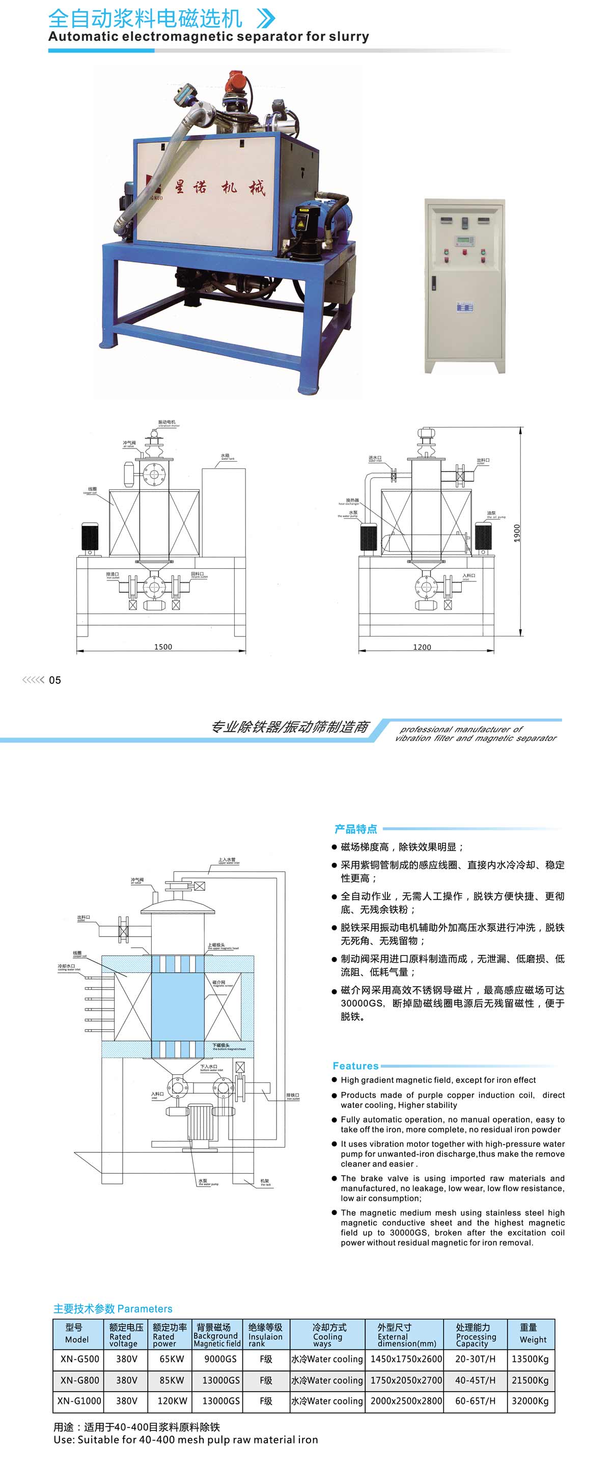 High gradient magnetic field, except for iron effect ·Products made of purple copper induction coil,direct water cooling, Higher stability Fully automatic operation, no manual operation, easy to take off the iron, more complete, no residual iron powder t uses vibration motor together with hing-pressure wate pump for unwanted-iron discharge,thus make the remove cleaner and easier . ·The brake valve is using imported raw materials and manufactured, no leakage, low wear, low flow resistance, low air consumption; The magnetic medium mesh using stainless steel high magnetic conductive sheet and the highest magnetic field up to 30000GS, broken after the excitation coil power without residual magnetic for iron removal. ; |